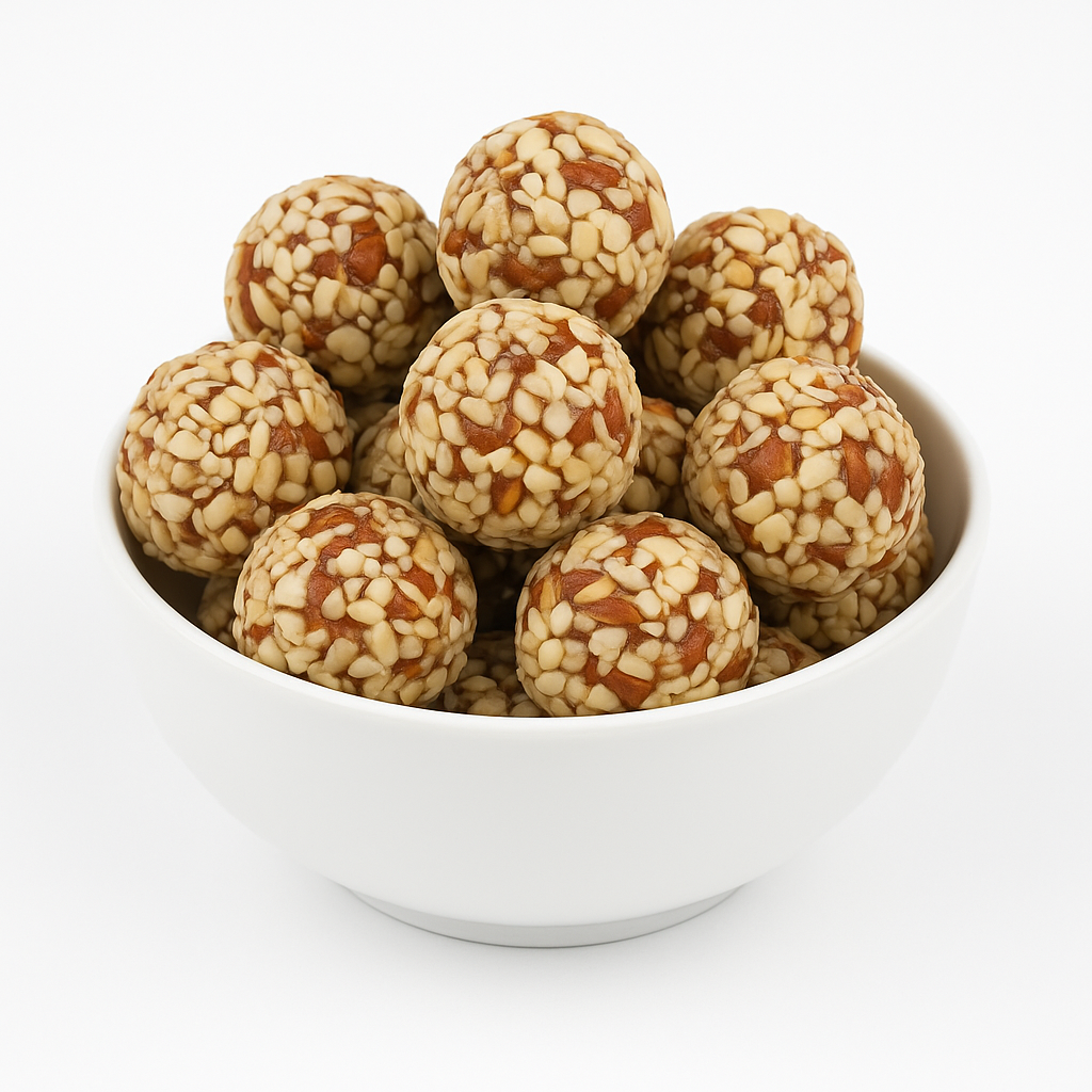 Nutty Balls are a deliciously healthy snack crafted from nature’s finest ingredients. Made with the natural sweetness of dates and date paste, these nutrient-dense balls deliver an instant energy boost without refined sugars. Each bite is enriched with the goodness of almonds, cashews, and pistachios — premium nuts known for their protein, healthy fats, and essential minerals that help keep you full and energized throughout the day. Blended with sunflower oil, a source of heart-healthy unsaturated fats, Nutty Balls offer a perfect balance of taste and nutrition. Whether you need a quick pick-me-up, a post-workout snack, or a wholesome dessert alternative, these naturally sweet and nutty treats make smart snacking both enjoyable and satisfying.